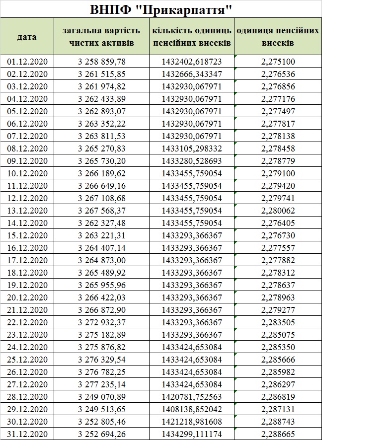 Чиста вартість одиниці пенсійних внесків